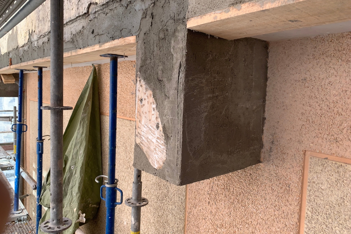 La reparación de la estructura de hormigón del edificio se completó con la aplicación de morteros técnicos de altas prestaciones:
